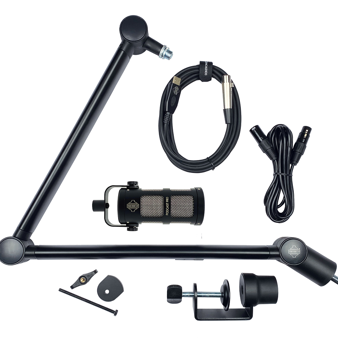 El nuevo Voicecasting Pack incluye el mic Podcast Pro, el soporte de brazo multi posicional de escritorio Elevate, y dos opciones de cableado: un XLR-USB para enchufar el micrófono directamente en una Mac o PC y un XLR-XLR para usar con un interfaz o mezclador.